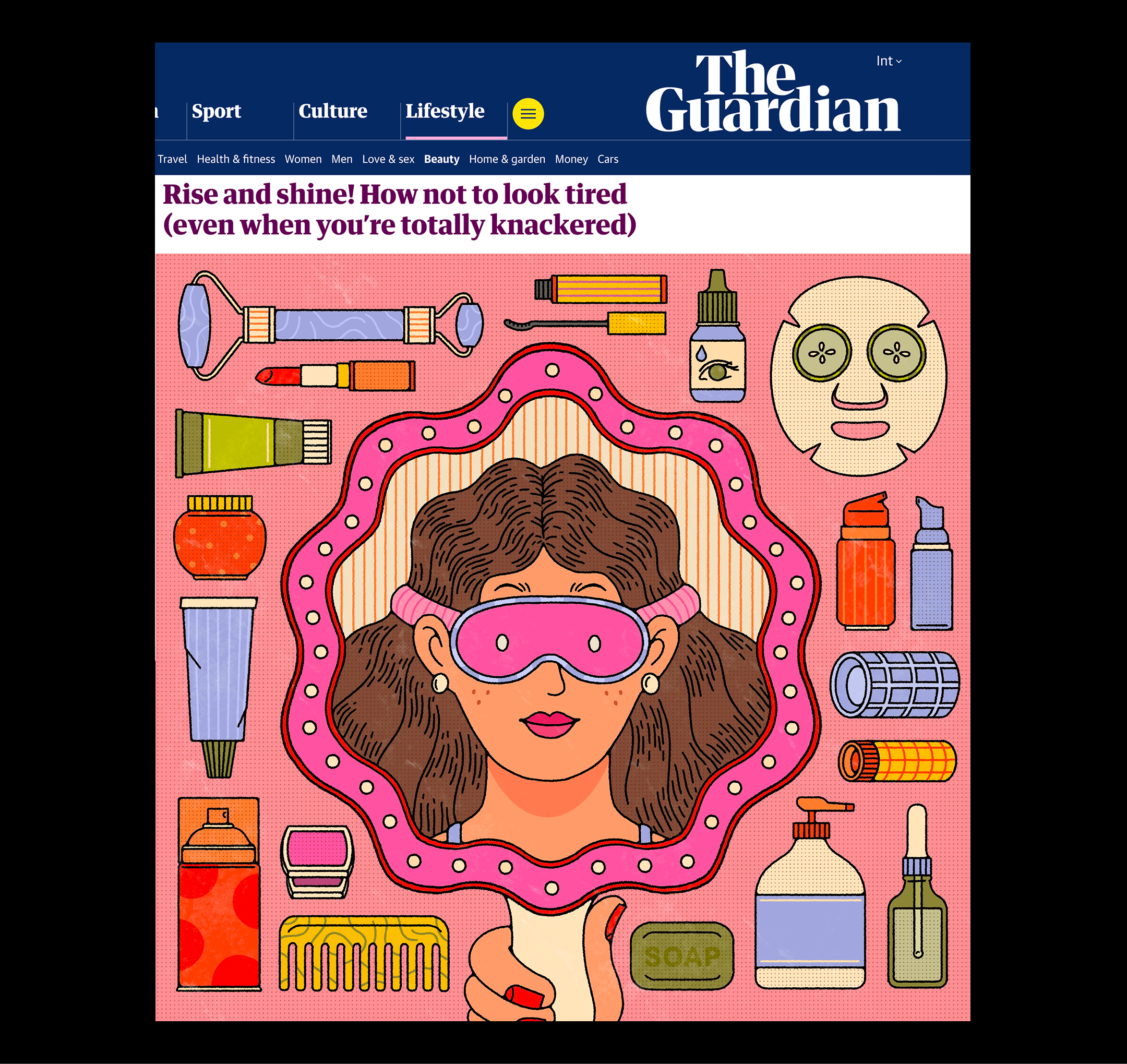 Editorial illustration for Anita Bhagwandas’ article, ‘Rise and shine! How not to look tired’, originally published in The Guardian. A self-initiated project.